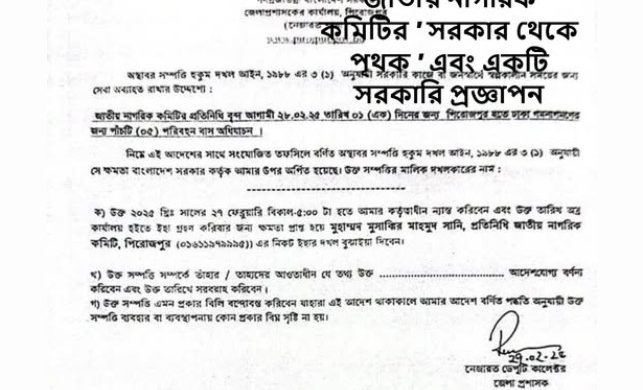 জাতীয় নাগরিক কমিটির ‘ সরকার থেকে পৃথক ‘ এবং একটি সরকারি প্রজ্ঞাপন শুক্রবার , ২৮ ফেব্রুয়ারি ২০২৫ জাতীয় নাগরিক পার্টি গঠিত হয়েছে। জাতীয় সংসদ ভবনের সামনে মানিক মিয়া অ্যাভিনিউয়ে বিশাল read more